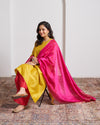 A vibrant classic in radiant Rani Pink. Handcrafted in luxurious Silk Chanderi, this dupatta is designed to bring festive brilliance to any ensemble. The luminous weave glows with richness, while the edges are finished with handmade tassels that sway gently with every movement, adding depth, texture, and charm. A timeless piece that celebrates tradition with effortless elegance.