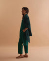 Designed in a rich emerald hue, this lightweight cape drapes beautifully, adding fluid movement to your silhouette. The subtle hand-done polka accents lend a playful yet refined touch, making it a versatile layer for both casual and elevated looks.