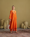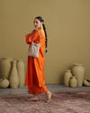 This vibrant set is a celebration of colour and craftsmanship, handcrafted in luxurious handwoven Silk Chanderi in a rich, captivating orange hue.