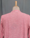 This flowing, A-line kurta in a delicate pink woven fabric offers beautiful movement and grace. It features an intricately detailed pintuck yoke that adds elegant texture to the round neckline. With its high-low hem and comfortable three-quarter sleeves, this piece is perfect for a stylish, relaxed, and feminine silhouette.